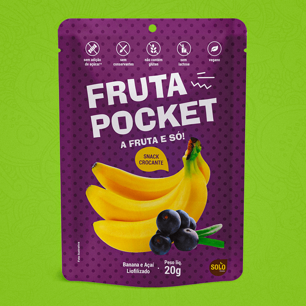 Fruta Pocket Banana com Açaí Liofilizada – 20g
